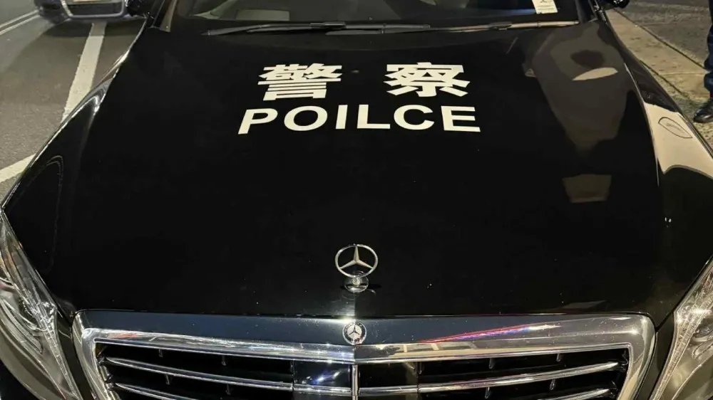 На чёрный седан были нанесены надписи иероглифами и Chinese Poilce (именно так, с ошибкой в последнем слове). Кроме того, на нём оказались установлены маячки. Всё вместе могло убедить других людей, что это реальный полицейский автомобиль. У правоохранителей возник резонный вопрос: зачем всё это сделано?