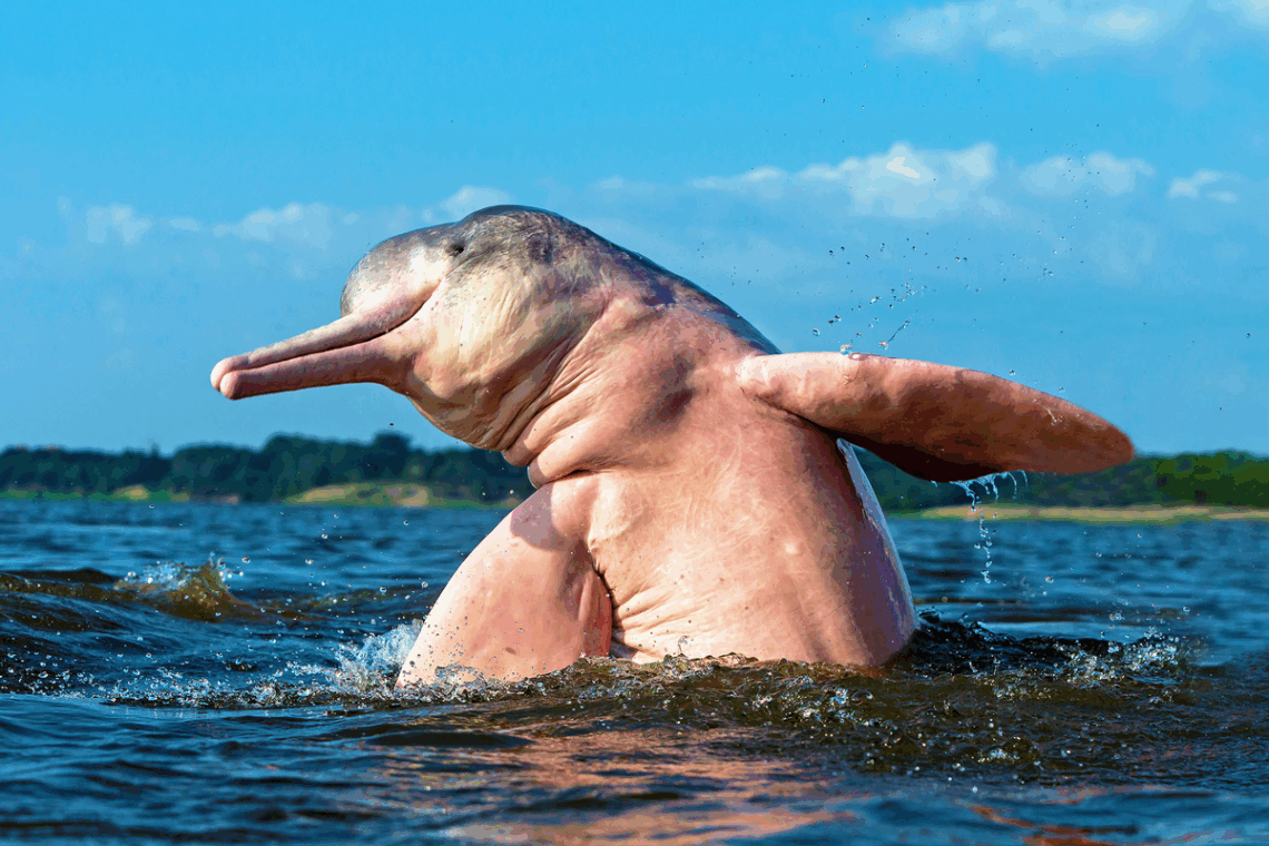 Правда, под водой речные дельфины, по сравнению с морскими собратьями, «близорукие». Для ориентации в пространстве инии, как и другие китообразные, используют эхолокацию — щёлкают на ультразвуке, а потом слушают эхо своих щелчков. От разных предметов звуковые волны отражаются неодинаково, что даёт животинам представление о мире вокруг. Так вот, речной дельфин щёлкает тише морского. То есть он видит местность перед собой, но плохо различает детали вдалеке. И это не баг, а фича! Амазонка — река мутная. Камни, пороги, течения, коряги — всё это сбивает с толку. Так что надо смотреть «под ноги», а не сканировать всё сразу.