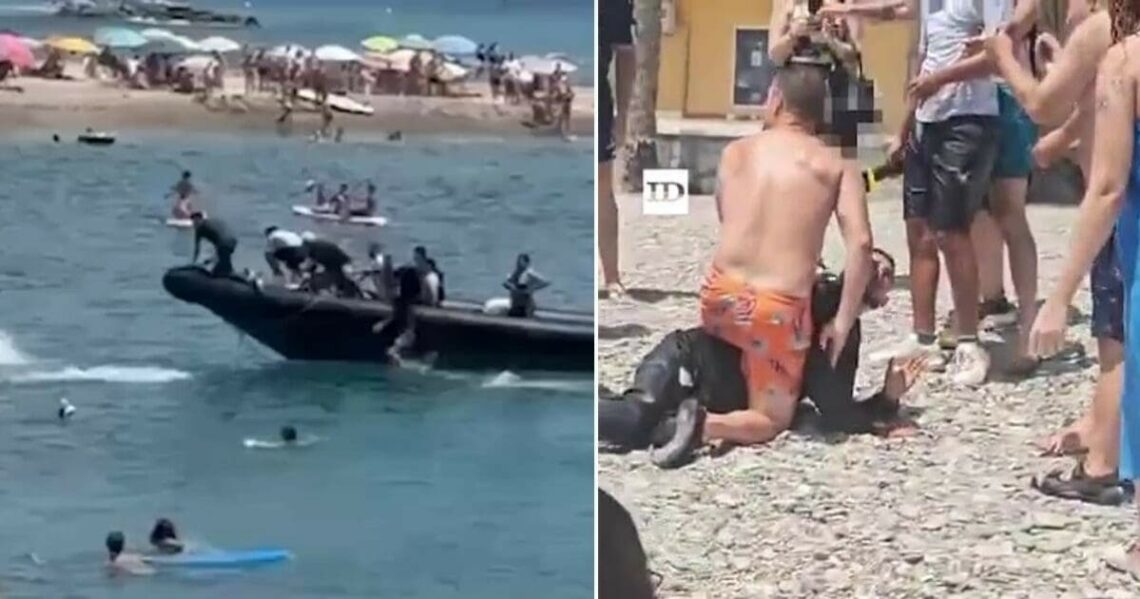 На записи видно, как около 13 мигрантов-нелегалов приплыли на резиновой лодке и немедленно начали высадку на европейский берег. Покинув плавсредство, они бросились вглубь материка, распугивая туристов.