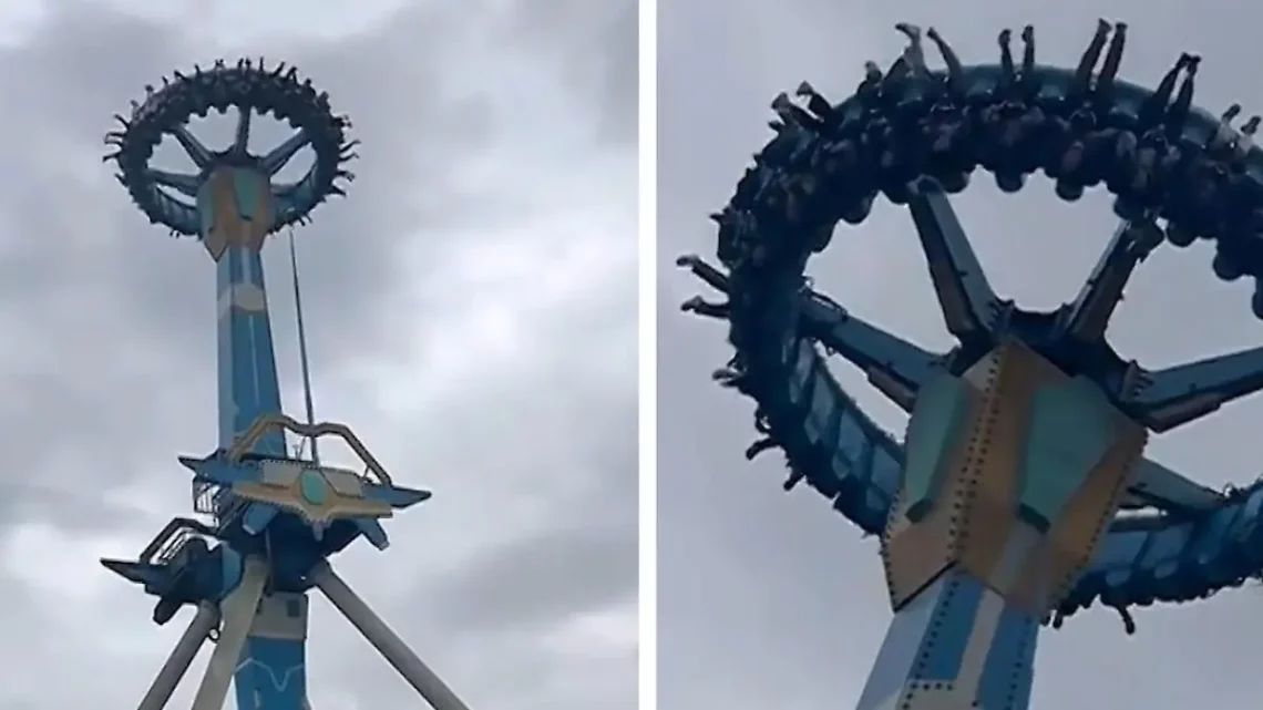 В Китае из-за неисправности аттракциона туристы застряли вверх ногами