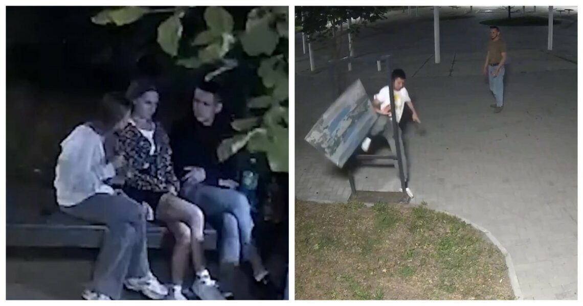 Уличная камера запечатлела инцидент. На кадрах видно, как человек выбивает дорожный знак, после чего вместе с другим владивостокцем ломают деревья, забирают знак и уходят с двумя девушками.