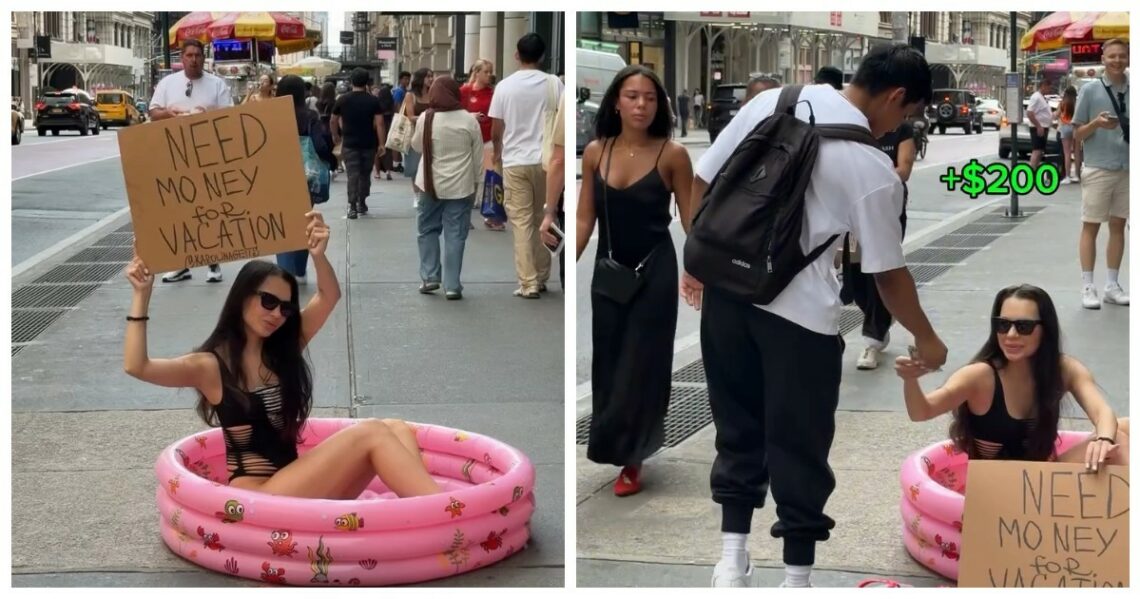 Юмор Девушка за час собрала у прохожих $2350 себе на отпуск 20.09.2025 - от markus Автор: 25 июля 2025 10:32 Схема проста: берем мини-бассейн, идем на оживленную улицу и сидим с табличкой, что собираем деньги на отдых. Источник: Ссылки по теме: