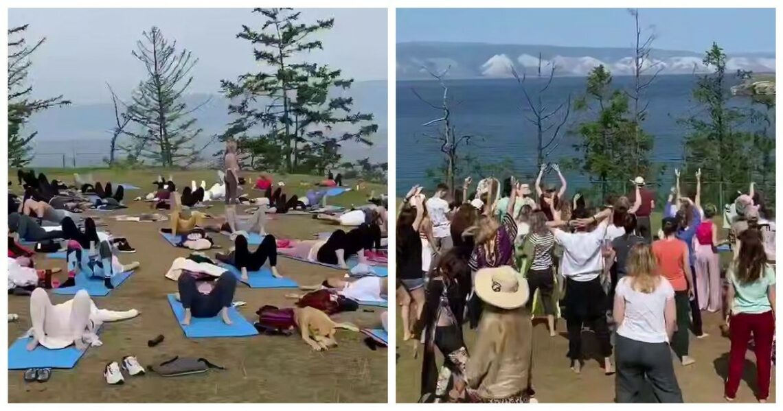 Толпа женщин, по всей видимости, со своей наставницей с бубном в руках занялась здесь странной энергопрактикой. Представительницы прекрасного пола активно и синхронно двигали нижней частью тела и издавали при этом громкие звуки.