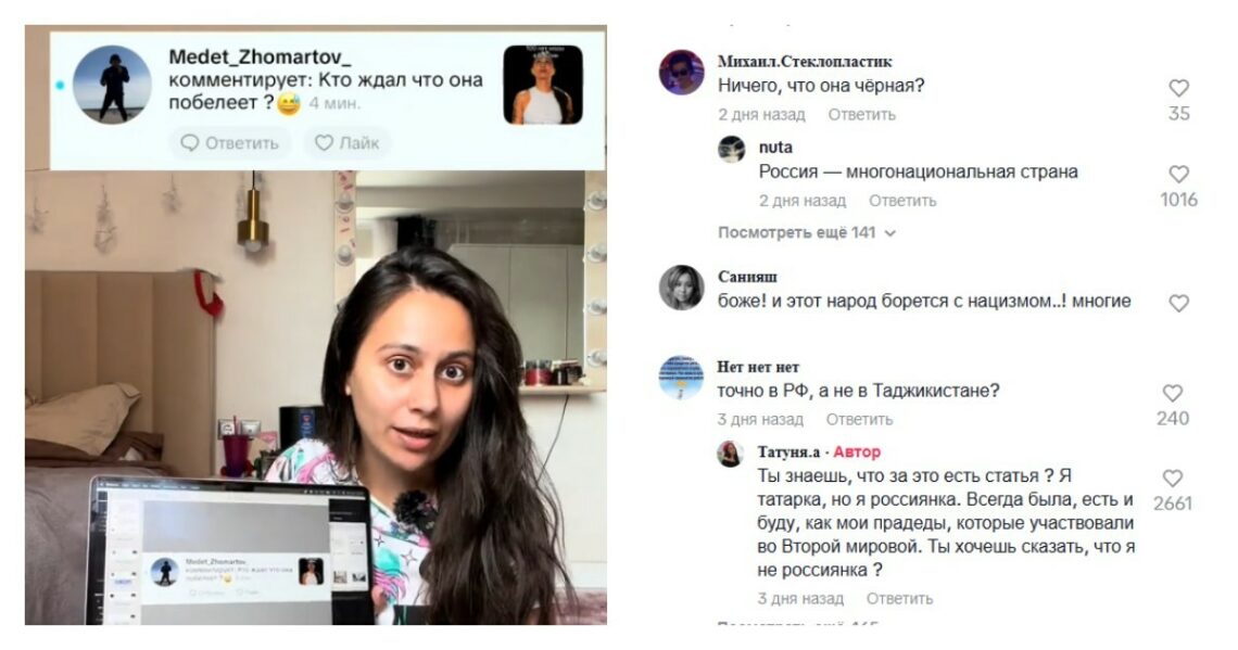 Девушка постаралась уловить атмосферу каждого из отрезков времени, подобрав актуальную тому периоду музыку и одежду. Видео получилось ярким и его посмотрели множество подписчиков ТикТок. Однако среди комментаторов нашлись те, кто осудил идею блогера. Ей заявили, что на россиянку она не тянет. Подобные замечания явно свидетельствуют о том, что некоторые люди не видят разницы в понятии «русский» и «россиянин». Россиянином, то есть гражданином России, может быть татарин, казах, армянин, узбек, таджик… На территории нашей страны проживает много национальностей, и все мы — россияне.