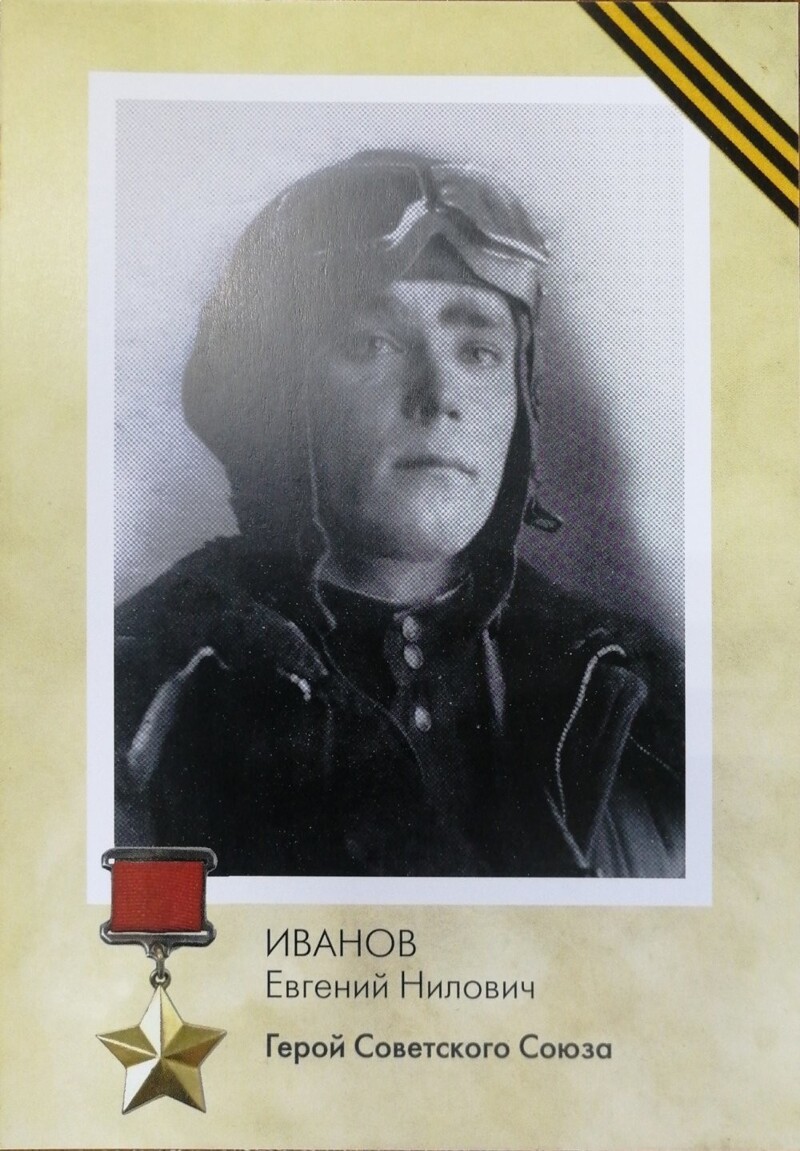 Командир эскадрильи 999-го штурмового авиационного полка капитан Иванов с 18 июля 1943 года по 22 сентября 1944 года совершил 119 боевых вылетов, из них 102 на штурмовку и 17 на разведку противника. Уничтожил и повредил около 85 орудий зенитной артиллерии среднего калибра, 59 орудий малокалиберной зенитной артиллерии, 78 крупнокалиберных пулеметов, 59 автомашин, 13 цистерн с горючим, 18 железнодорожных вагонов, 12 землянок, 5 самолётов, 14 дзотов, 5 орудий тяжёлой артиллерии. Эскадрилья Иванова только с 1 февраля по 22 сентября 1944 года совершила 615 боевых вылетов на штурмовку войск и объектов противника. 19 марта 1945 года в районе города Вормдитт (Орнета, Польша) штурман полка капитан Е.Н. Иванов совершил таран, направив горящий самолёт на миномётную батарею противника. Через три дня город заняли советские войска.