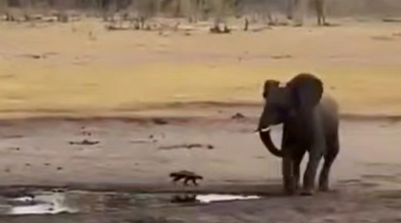 В один момент большое животное попыталось уйти, но медоед продолжил преследовать его. Тогда слон развернулся и пнул зверька так, что тот отлетел в сторону. Эту схватку на видео сняли туристы.