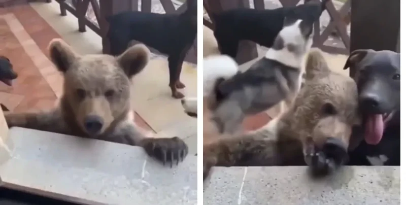 Мужчина кормил своих собак, когда заметил неожиданного «нахлебника» среди них