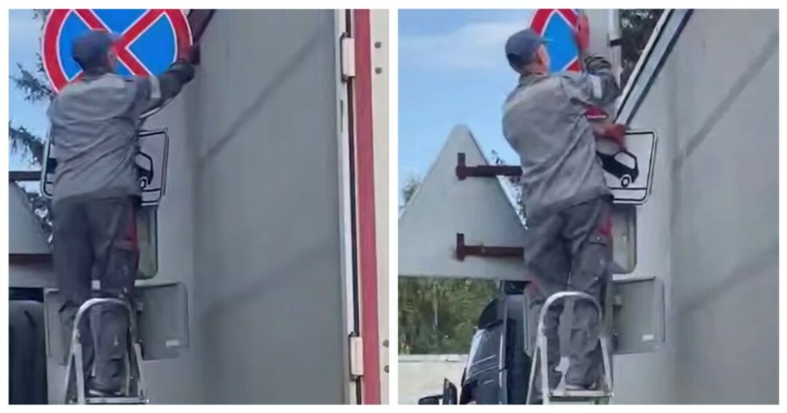 Получил очень «увлекательное» видео, спасибо автору за неравнодушие: в самом сердце Омска группа товарищей курочит дорожные знаки, чтобы большегруз мог протиснуться на узкую улочку. Подготовились, как надо, даже стремянку прихватили.