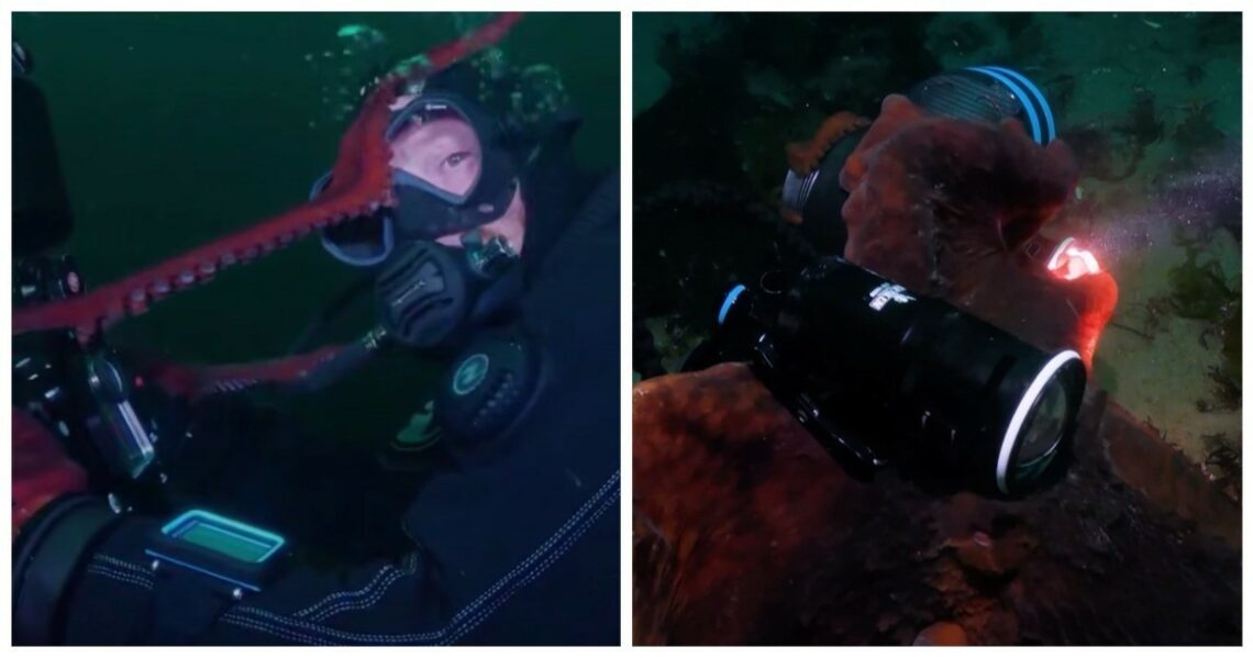Подводные фотографы Джон Рони и Крис Маллен во время погружения в заливе Нануз у острова Ванкувер в Канаде заметили гигантского осьминога (Enteroctopus dofleini). Когда дайверы приблизились к морскому существу, оно проявило интерес к человеку и его видеокамере. Осьминог охватил щупальцами устройство, и один из дайверов передал работающую камеру животному, которое сняло уникальное видео.