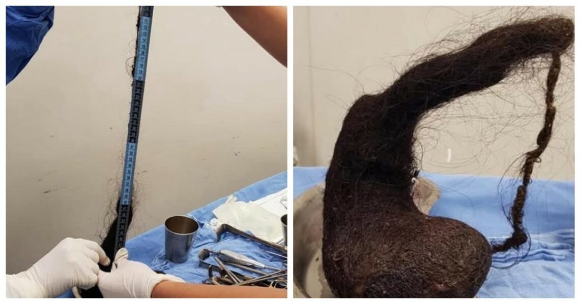 Врачи обследовали ребенка и обнаружили в его животе огромный ком из волос, слизи и разлагающихся кусков пищи. Они успешно вырезали его из желудка девочки. Вскоре она поправилась и отправилась домой.