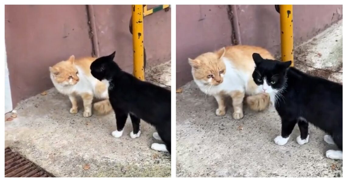 Пушистые хулиганы устроили разборки у входа в подъезд