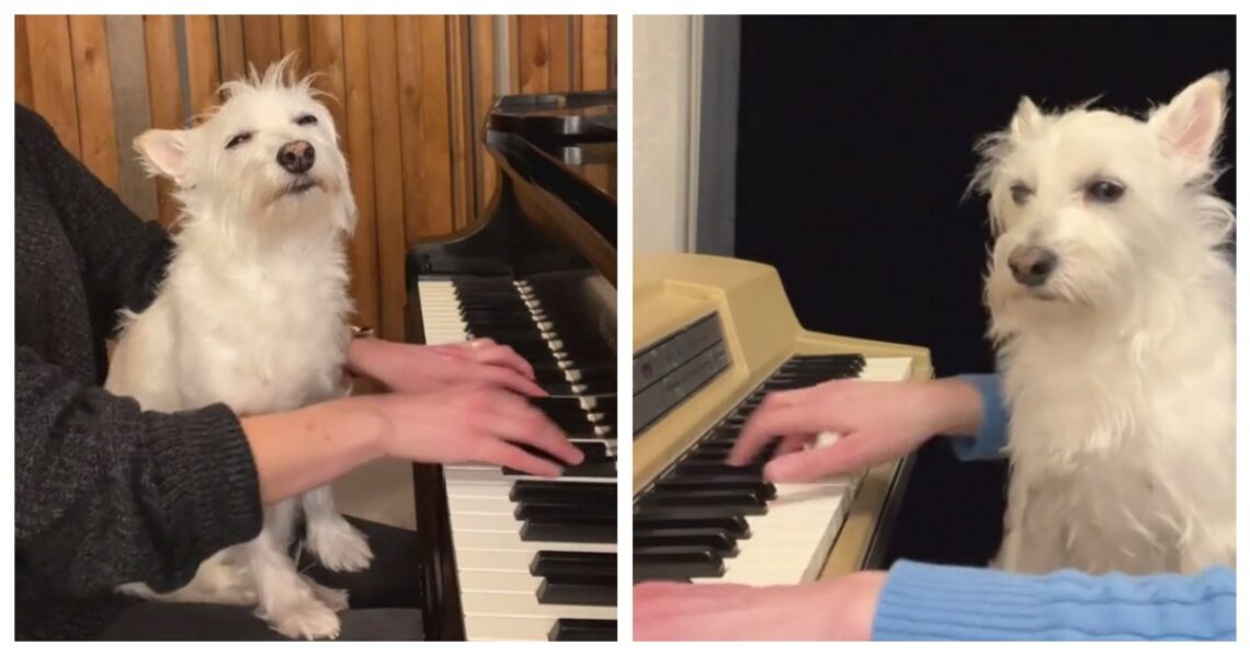 Пёс всегда внимательно слушает, как его хозяйка играет на фортепиано