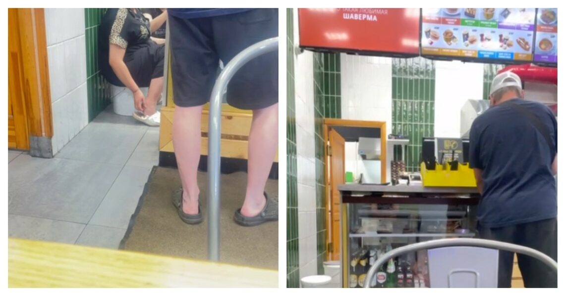Работница кафе чешет пятки