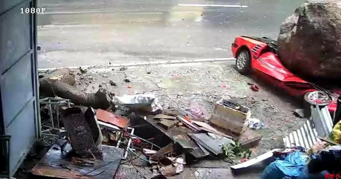 Собака уцелела после падения 30-тонного валуна на подъездную дорожку к дому