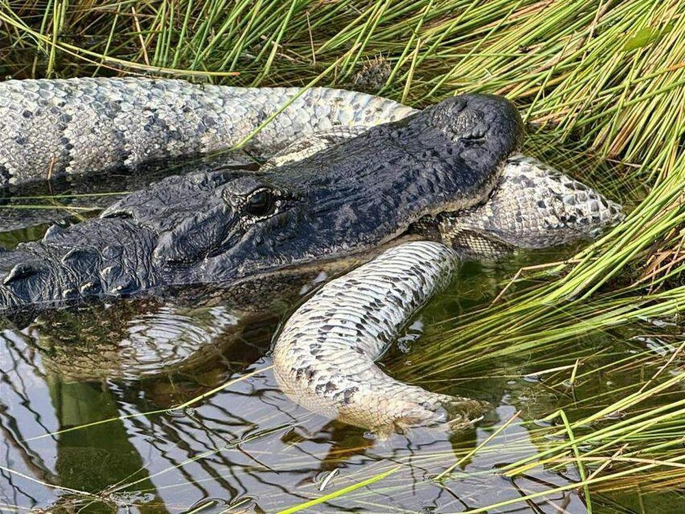 Свидетелем редкой сцены стала фотограф дикой природы Элисон Джослин. Она заметила аллигатора неподалеку от смотровой башни Шарк-Вэлли в пятницу, 8 августа, и сняла последствия схватки, которая произошла накануне. «Похоже, аллигатор время от времени пытался съесть змею, но без особого успеха, а потом отдыхал, держа ее в пасти», — утверждает фотограф.