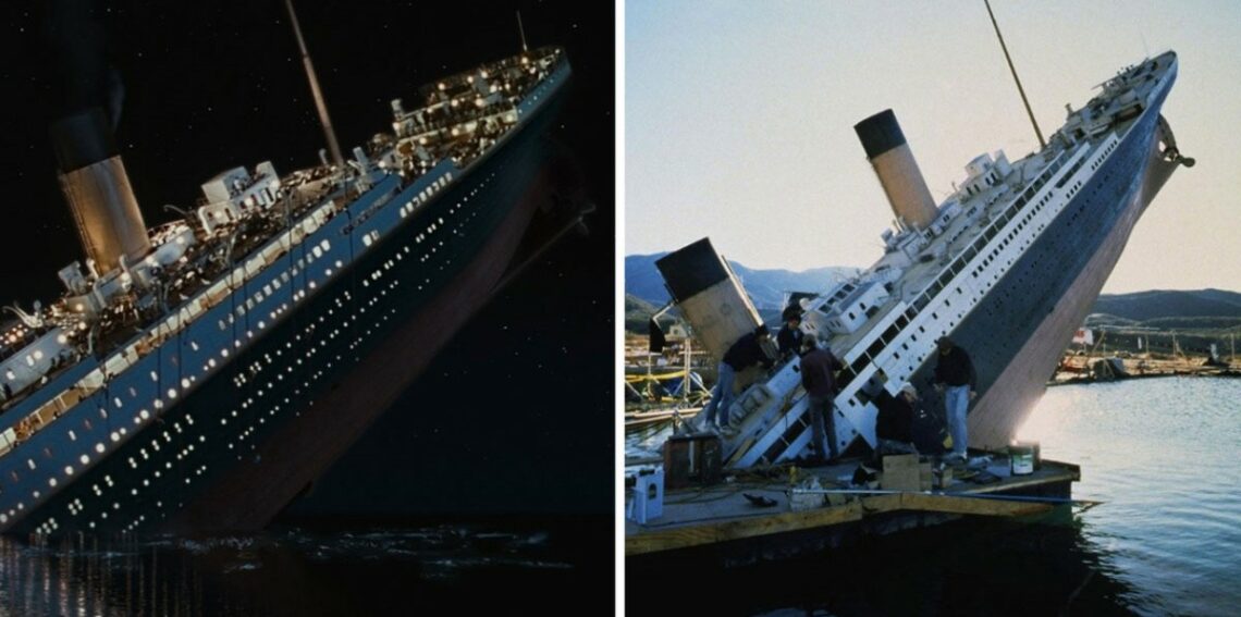 Подборка интересных фотографий, демонстрирующих, как на самом деле выглядели гигантские объекты, снятые в популярных фильмах.