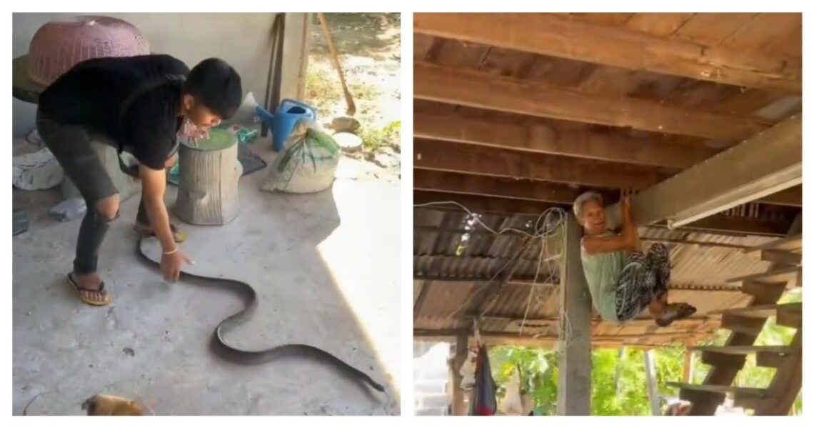 Инцидент, произошедший в деревне Дон Хат (Таиланд), обернулся неожиданным образом. Парень схватил змею, но неудачно — она вырвалась и начала хаотично ползать по полу.