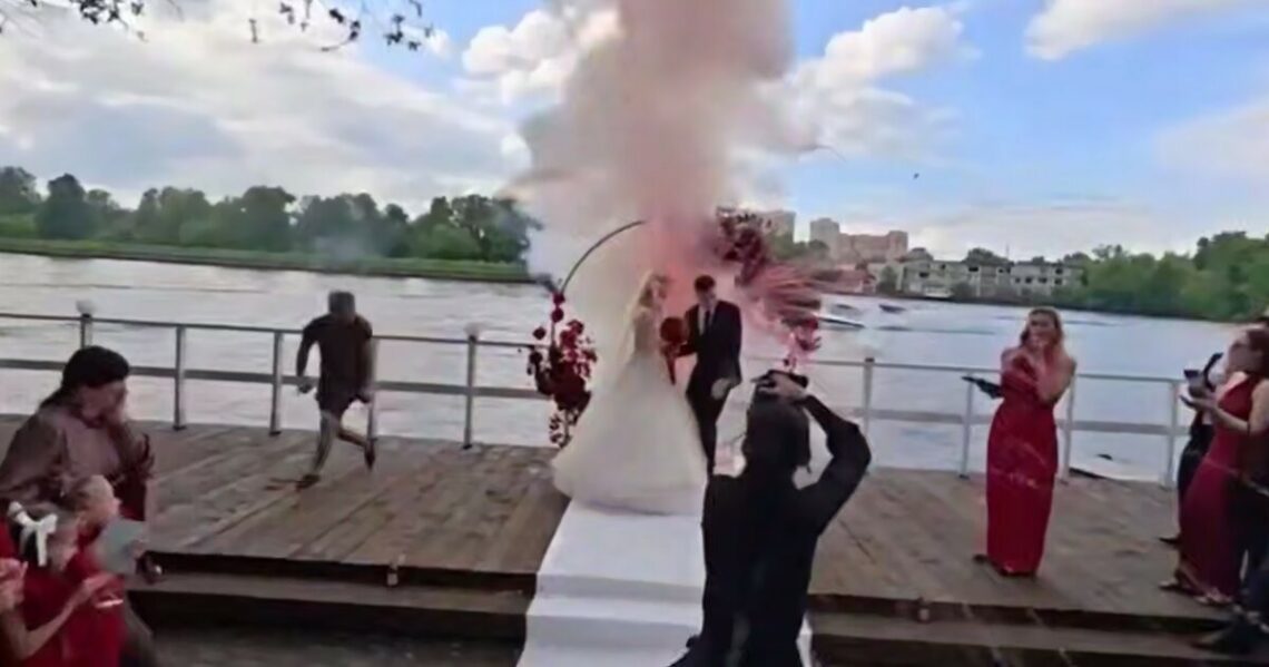 Внеплановый фейерверк случился, когда жених с невестой стояли у алтаря на водохранилище в Долгопрудном. Досталось многим гостям, а молодожёнам больше всех. По словам Даны, красавицы в белом, ей сильно опалило волосы и сожгло платье. К счастью, серьезно никто не пострадал.