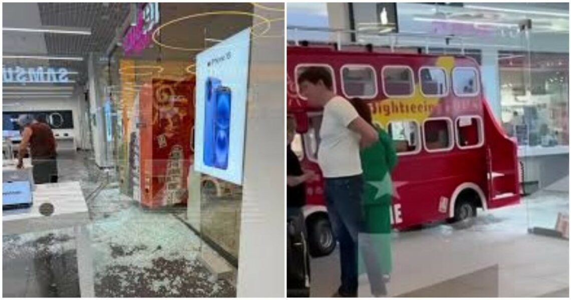 В Подмосковье дети угнали детский автобус и снесли витрину ТЦ