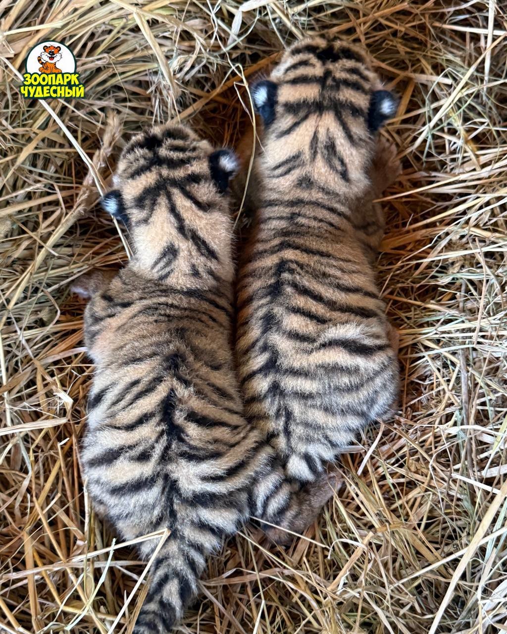 Тигрята, насколько известно, появились на свет 21 июня. Родителями стали Кристалл и Алмаз — это их первое потомство. Каждый из малышей, а это два мальчика, весит около килограмма. Котята чувствуют себя хорошо. У них прекрасный аппетит, заявили в зоопарке.
