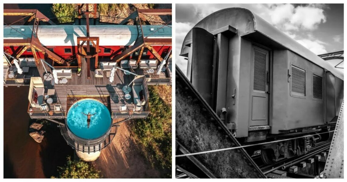 Гости могут остановиться в одном из 24 стильных номеров в переоборудованных вагонах или выбрать роскошный стеклянный домик на мосту с панорамным видом. Многие номера имеют отдельные бассейны, нависающие прямо над рекой.