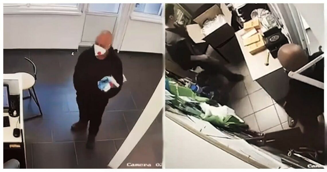 На кадрах, попавших в распоряжение, видно, что лысый мужчина в медицинской маске сначала делает вид, что интересуется товаром. Затем злоумышленник достает нож, приставляет его к груди сотрудника и отводит к кассе, где требует отдать ему все деньги.