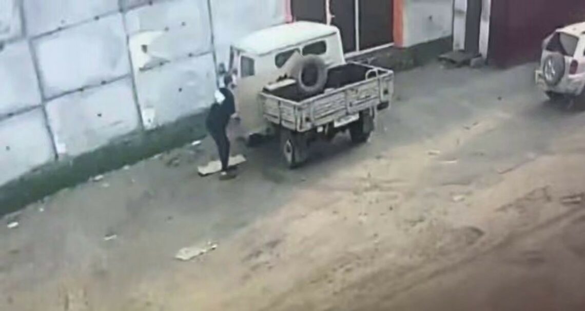 В городе Междуреченск (Кемеровская область) загорелся УАЗик. Водитель вбежал в гараж и схватил первое попавшееся ведро, а затем вылил содержимое на автомобиль.