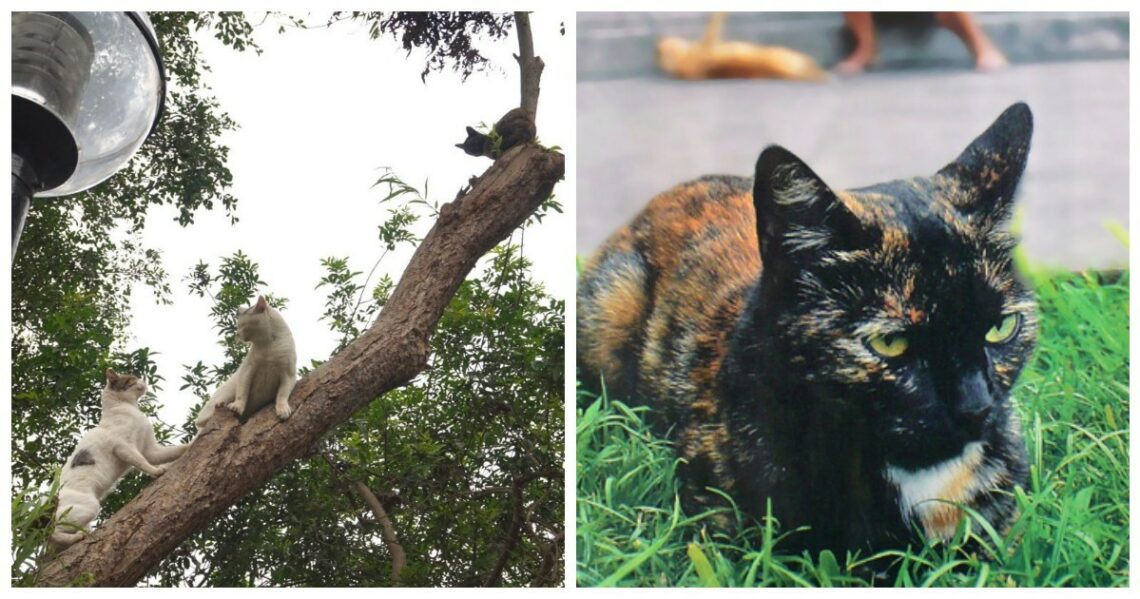 Здесь живут кошки всех мастей и размеров — пушистые, гладкошёрстные, пятнистые и полосатые. Их никто не трогает. Они валяются на скамейках, дремлют в цветниках, карабкаются по деревьям и даже усаживаются на колени к туристам, которые с радостью их гладят.