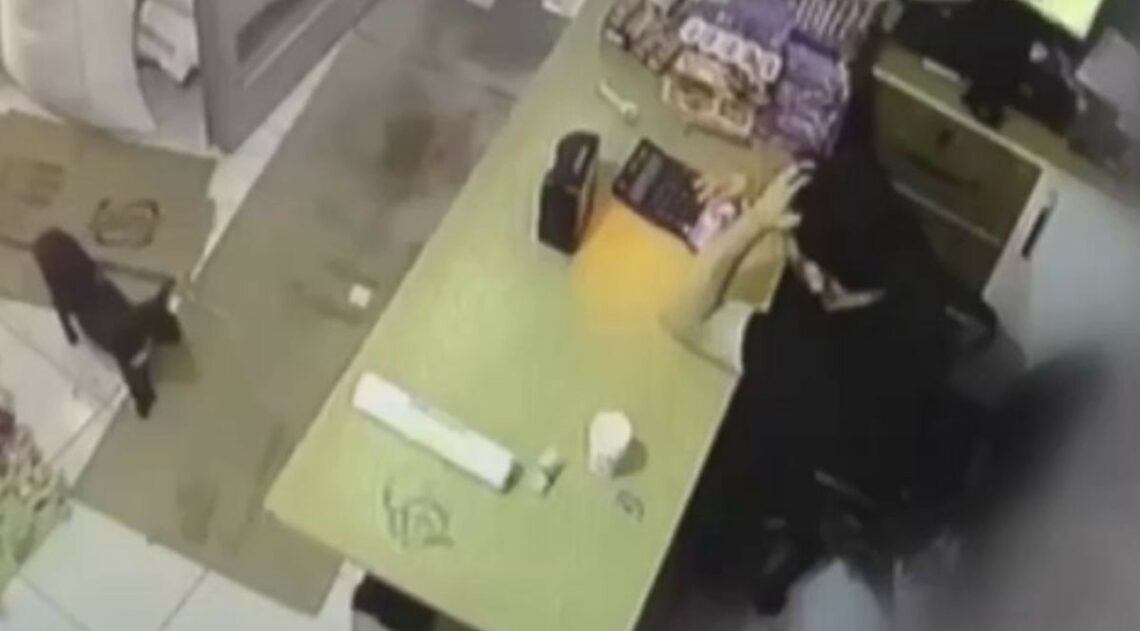 Кот подошел ко столу продавца и незаметно сдвинув коробку. Мужчина не заметил пушистого озорника и испугался.