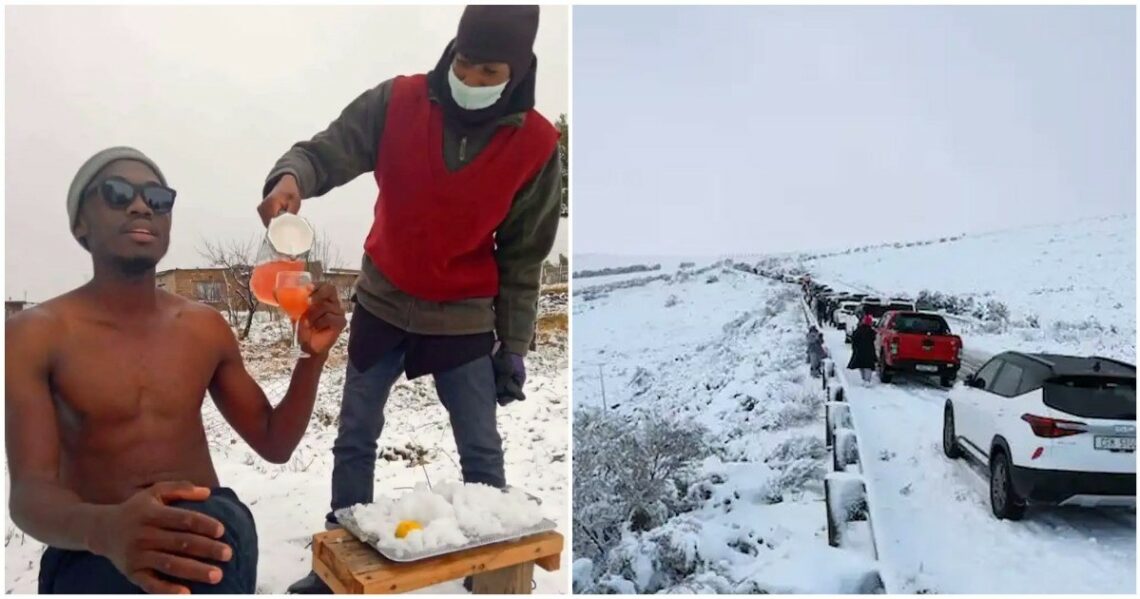 Снег наблюдается также в Лесото. Из-за непогоды сотни машин в разных провинциях ЮАР застряли в больших пробках.