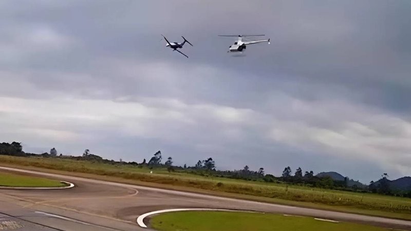 Пассажирский самолет опасно сблизился с вертолетом в Бразилии и попал на видео.