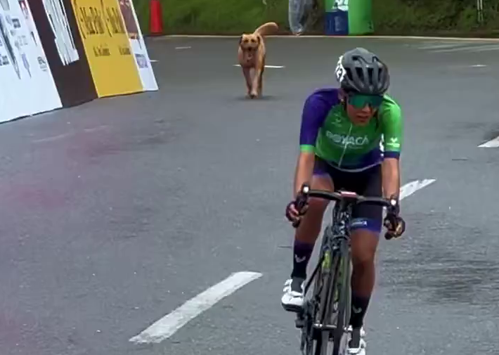 Собака внезапно появилась на трассе посреди велогонки в Колумбии