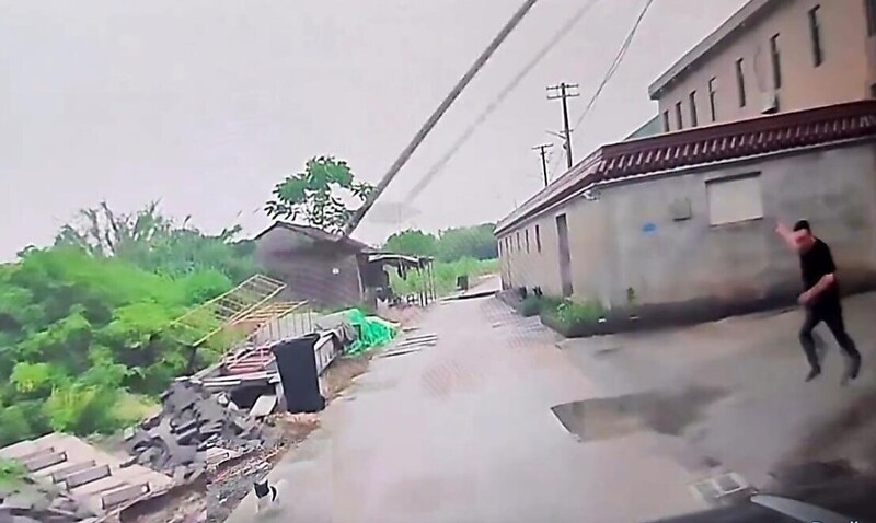Автор видео успел остановить своё транспортное, едва не сбив неуравновешенного местного жителя.