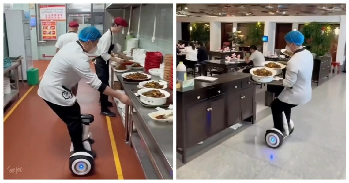 Удивительное рядом В Китайском ресторане официанты передвигаются между столиками не пешком, а на гироскутерах 24.09.2025 - от markus Автор: 20 мая 2025 09:53 Хозяин заведения рассказал, что это не только ускоряет обслуживание, но и добавляет зрелищности: подносы с горячими и тяжёлыми блюдами буквально «летают» по залу. В итоге посетители в восторге, а персонал экономит силы и время. Источник: Ссылки по теме: