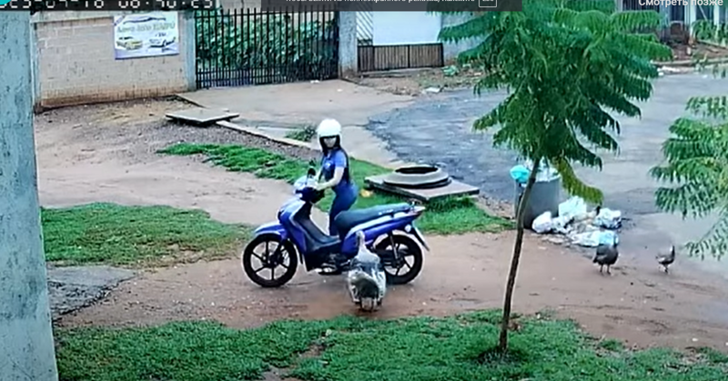 Индюк облюбовал припаркованный мотороллер, а потом «подрался» с владелицей транспорта
