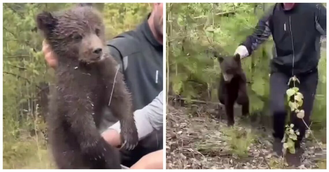 Выяснилось, что трое жителей поселка Новая Игирма заметили рядом с производственной базой, где они работали, косолапого малыша. Поскольку неподалеку находились дети, а вслед за медвежонком могла прийти и его мама, сотрудники решили помочь ему вернуться в лес.