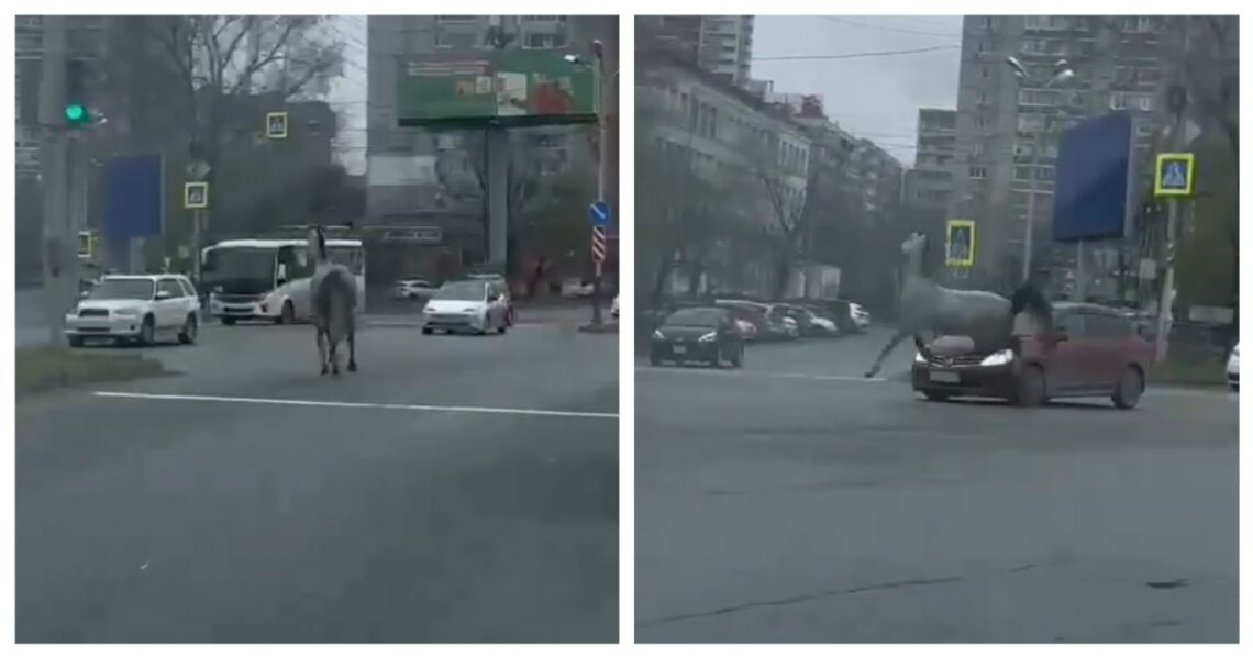 Конь сбежал от хозяина и устроил ДТП в Хабаровске