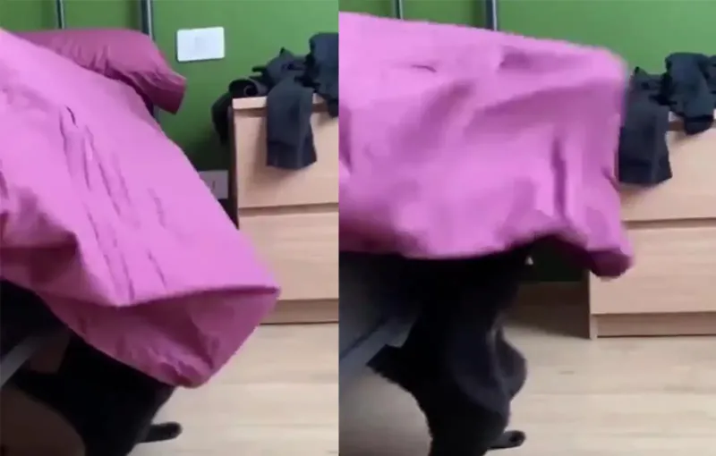Котейка из видео устроил отчаянное сражение с простыней, которую сам же и превратил в своего противника. Запутавшись в ткани, он не стал искать очевидный выход, а вместо этого попытался решить проблему креативно и зрелищно — боксерским поединком. Лапы пушистого мелькали как перчатки, и в итоге простыня получила по заслугам!