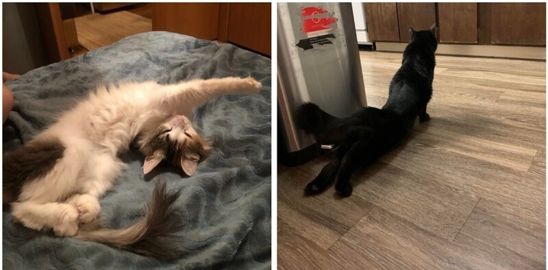 Когда котейка потягивается, то он не просто потягивается, а превращает обычную разминку в поэзию пластики, демонстрируя настоящее искусство. От царственного вытягивания лапок до акробатического прогиба спины — эти фото доказывают, что кошки создали культ потягушек.