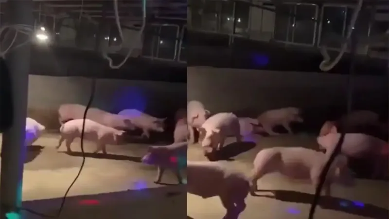 Фермер решил, что его свинкам пора как следует оторваться, и соорудил для них настоящий танцпол прямо в загоне. Стоило включить музыку, как хрюшки, будто по команде, ринулись в пляс, виляя хвостиками и топая копытцами. Этот фермер явно знает толк в вечеринках — его подопечные не просто едят и спят, а живут, как звезды сельских дискотек.