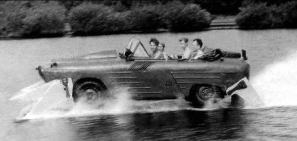 Суть новой идеи заключалась в максимальном сокращении сопротивления движению за счет частичного или полного приподнимания корпуса и колес над поверхностью воды при помощи специальных профилированных гидродинамических устройств – подводных крыльев. На высокой скорости они создавали эффект воздушной подушки, выталкивая амфибию из воды и выводя ее в режим глиссирования, позволявший многократно сократить сопротивление и в несколько раз увеличить скорость на плаву. Что касается автомобильной техники, то впервые в 1955 году на подводные крылья была установлена американская 2,5-тонная амфибия DUKW периода Второй мировой войны, переоборудованная 880-сильной газовой турбиной и достигавшая на воде невероятно высокую на то время скорость – 80 км/ч. Додуматься же до создания аналогичной легкой машины американцы не смогли, а скорее заранее были убеждены в ее бесперспективности.
