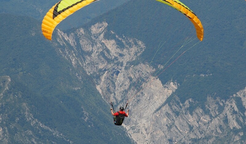 Китайский парапланерист по имени Лю Гэ чуть не погиб во время полета над горами Цилянь на севере страны.