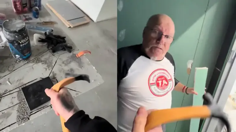 Юмор Парень разыграл отца во время ремонта с помощью мягкого молотка 24.09.2025 - от markus Автор: 08 мая 2025 09:12 С помощью мягкого молотка он неожиданно ударяет отца по руке, вызывая мгновенную реакцию. Сначала недоумение застыло на его лице, как маска, но тут же сменилось громом ругательств, когда до отца дошло, что это всего лишь безобидная шалость. Источник: Источник: Ссылки по теме: