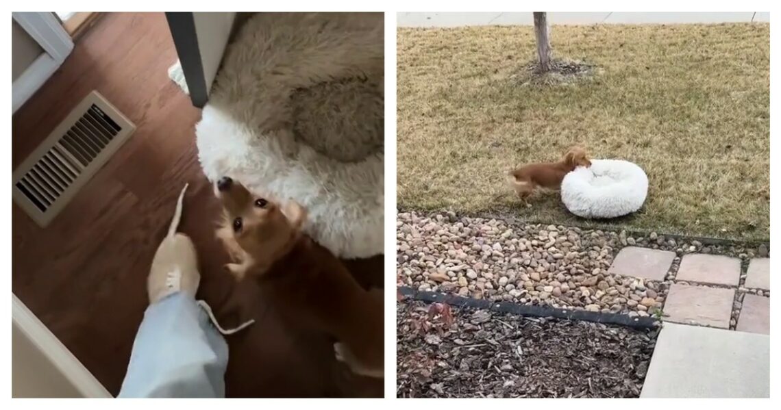 Пёс каждый день выносит свою лежанку во двор