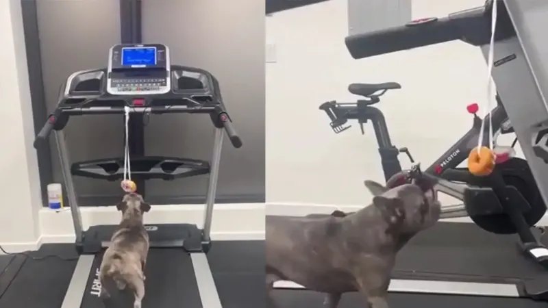 Бульдог из этого видео явно не подписывался на фитнес-программу, но его хозяин решил, что питомцу необходимы физические нагрузки. Поэтому пёс, скрипя всеми своими подушечками, начал шагать по беговой дорожке, завороженный вращающейся сладкой приманкой. Пончик был подвешен аккурат перед его носом — не слишком близко, чтобы съесть, но и не настолько далеко, чтобы махнуть на все лапой.