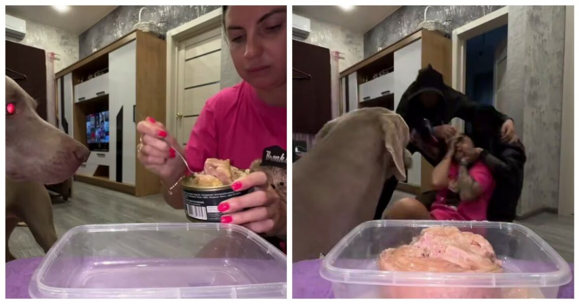 Реакция собаки на нападение «грабителей» на хозяйку