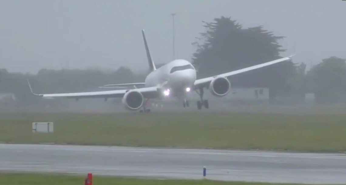 Самолет едва не коснулся крылом земли во время приземления в аэропорту Дублина и попал на видео.