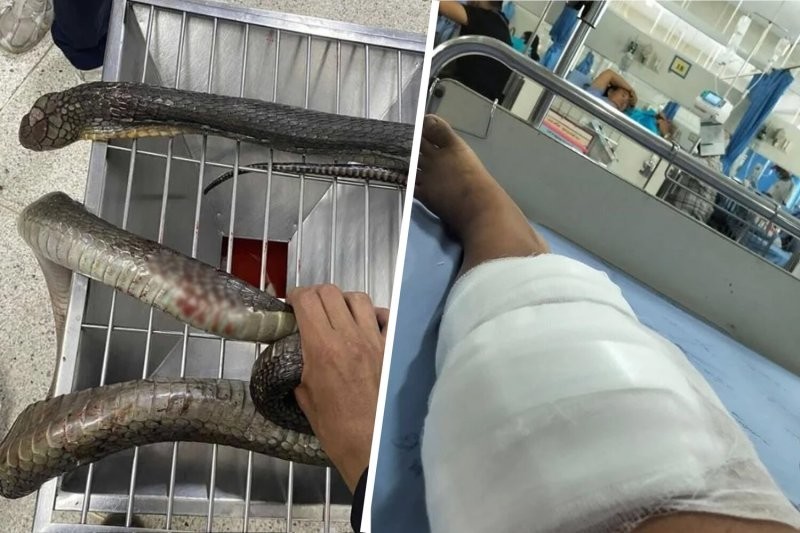 В Таиланде женщина руками поймала напавшую на неё кобру и приехала с ней в больницу