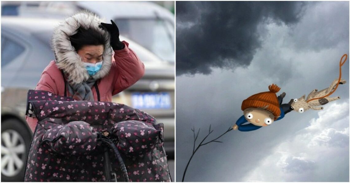 Предупреждение о том, что тех, чей вес меньше, может унести, стало трендом в китайских социальных сетях. Известно, что сильные ветры, переносящие песок и пыль из Монголии, являются обычным явлением в это время года в северных и восточных регионах Китая.