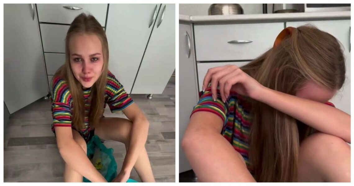 Юная особа проливает слезы, представляя грядущую жизнь, где ей предстоит ежедневно и в больших объемах заниматься готовкой для домочадцев.